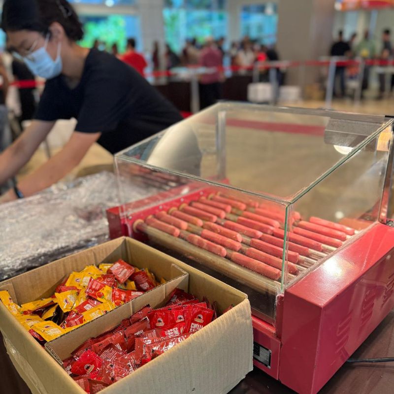 We are not a Halal-certified company, but our ingredients and hotdogs are sourced with Halal-certified packaging. For our station setup, we ensure that there is no pork or lard used.